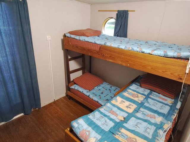 Slaapkamer: drie enkele bedden, waarvan één kinderbed (tot 10 j) met dekbedden en hoofdkussens